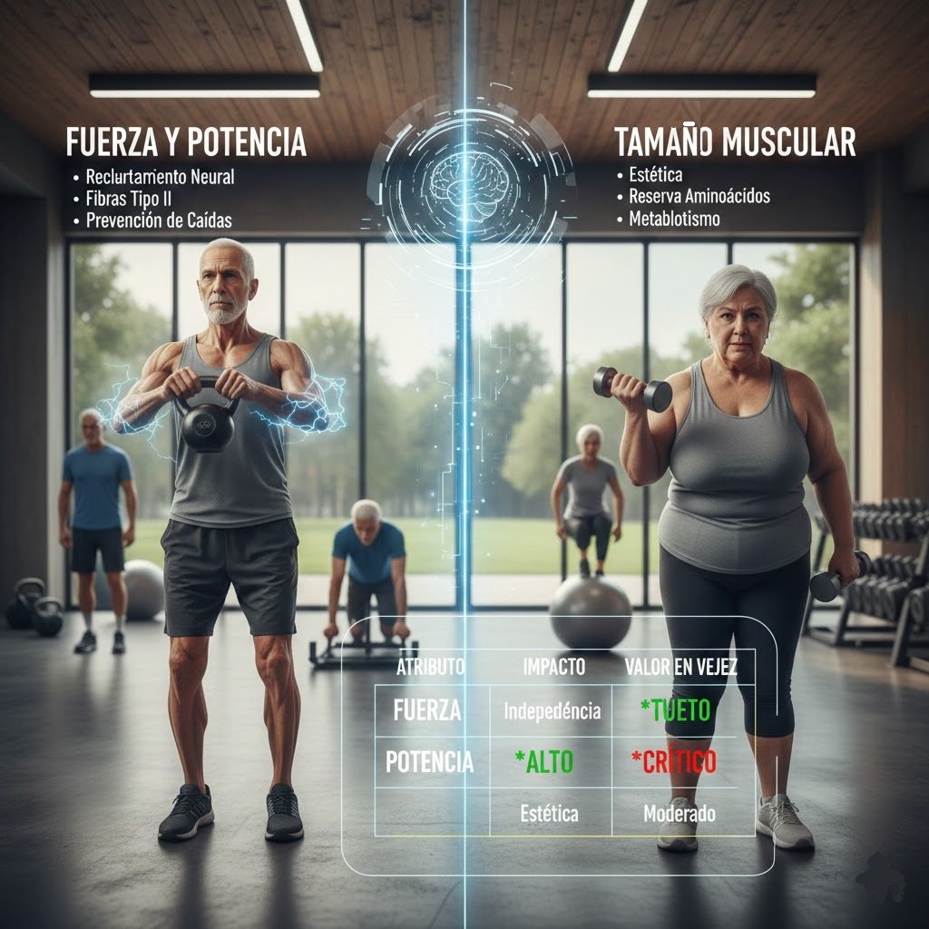 la fuerza y la potencia son mucho más determinantes para un envejecimiento saludable que el simple tamaño muscular.